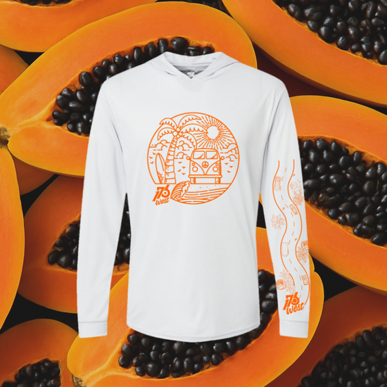 This collection captures the glow of tropical evenings 🌅 in Guánica 🇵🇷 with bold papaya-orange linework that celebrates the slow rhythm of coastal life. Made to catch golden light 🌊, dance with palm shadows 🌴, and flow effortlessly into sunset paddle board 🏄🏽.